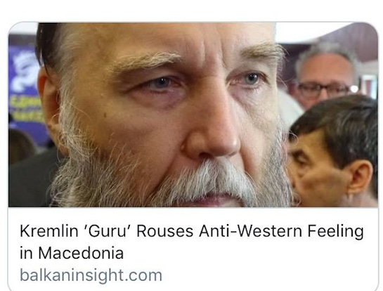 Controversial Russian “philosopher” Alexander Dugin was in town recently, Skopje, the Macedonian capital to offer his thoughts to a new pro Russian party called Edinstvena Makedonija (United Macedonia). see link here . He stands accused of whipping up anti West sentiment in Macedonia.