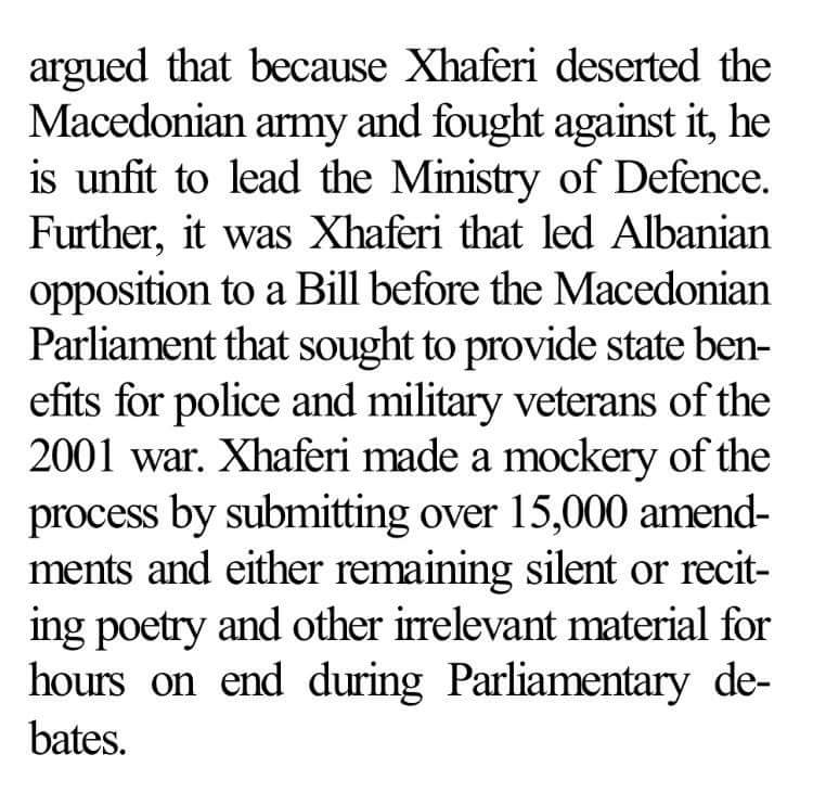 In one of the oddest- downright stupid- political moves of the Nikola Gruevski government (2006-16)–a coalition of the nominally Macedonian “nationalist” VMRO-DPMNE and Albanian DUI led by Ali Ahmeti, the man who with US backing invaded Macedonia from Kosovo in 2001 and later “amnestied,–placed another Albanian insurgent and suspected war criminal Talat Xhaferi as Defence Minister in 2013.