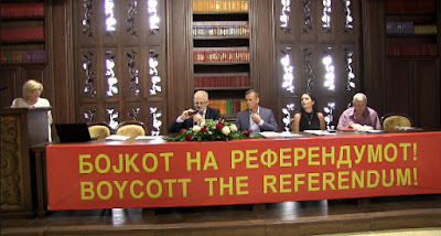 Mr Petrov called upon the Albanian community in Macedonia to boycott the referendum, reminding it of the support that Macedonia gave in taking in Kosovar Albanian refugees from the 1999 NATO war and the granting of over 150,000 citizenships.