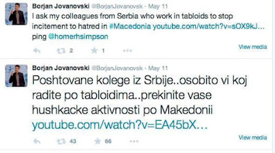 Instead Borjan Jovanovski says cute things on Twitter “criticising” Serbia but calls for no protests. He refers to Serbian nationalist extremists as “respected colleagues” (postovane kolega) even though they incite hatred in Macedonia. It’s an odd way to address people who peddle hate. Most of these Serb government controlled journalists peddle anti US, anti Albanian stories, some taken from Russian “think tanks” and then recycled and used in Macedonia.