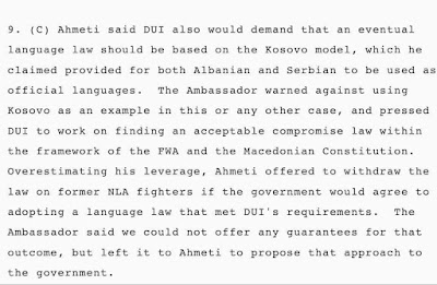 In 2007 the US Embassy warned against raising Albanian on par with Macedonian as an official language in Macedonia – knowing it would lead to federalisation and then unravelling of Macedonia.